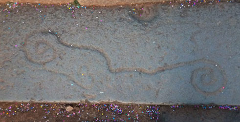 Santa Cruz ejecuta un dibujo en su crónica mostrando, según explica el andar del Inca cuando ingresaba a los poblados que visitaba. Creemos que un desplazamiento de este tipo no era posible realizarlo en todos los lugares que visitaba por cuanto exige una cartografía del suelo muy particular, impropio de los poblados serranos. Consideramos que es más bien la forma del caminar del Inca en particulares momentos y espacios sacros. ¿Por qué esta manera de desplazarse del soberano? No puede explicarse estos movimientos desligado de su investidura temporal e intemporal y sacra, de su condición de hijo del Sol por lo tanto imitador de lo que Guaman Poma llama: los ruedos del Sol. En una interpretación adicional y más divina, si se quiere, se trata del espacio y tiempo entretejido, del tiempo cíclico que él encarnaba como la más alta expresión humana de la divinidad. Aquí, de nuevo, Santa Cruz puede haber interpretado el sentido restringido de este caminar y dejado de comprender su significado teológico y filosófico.