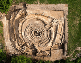 En Caral hallamos una expresión avanzada de la utilización del circulo en edificaciones sacras. Es el templo principal
