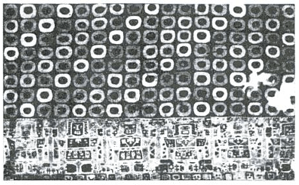 Para interpretar esta conjunción fue necesario visitar y observar restos culturales materiales y pesquisar con los criterios que permitieron ubicar a la malla-tejido como símbolos de la urdimbre espacio-tiempo. La tarea se facilita con la cantidad de restos y objetos a nuestro alcance. El tejido, y también el signo espiralado tuvieron masiva difusión desde espacios centrales y locales del territorio andino, con distribución que no descuidó ningún espacio de influencia. El enlace espacio-tiempo tuvo menos difusión, aparenta haber sido menos comprendido su significado. Veamos algunos ejemplos de aquello: